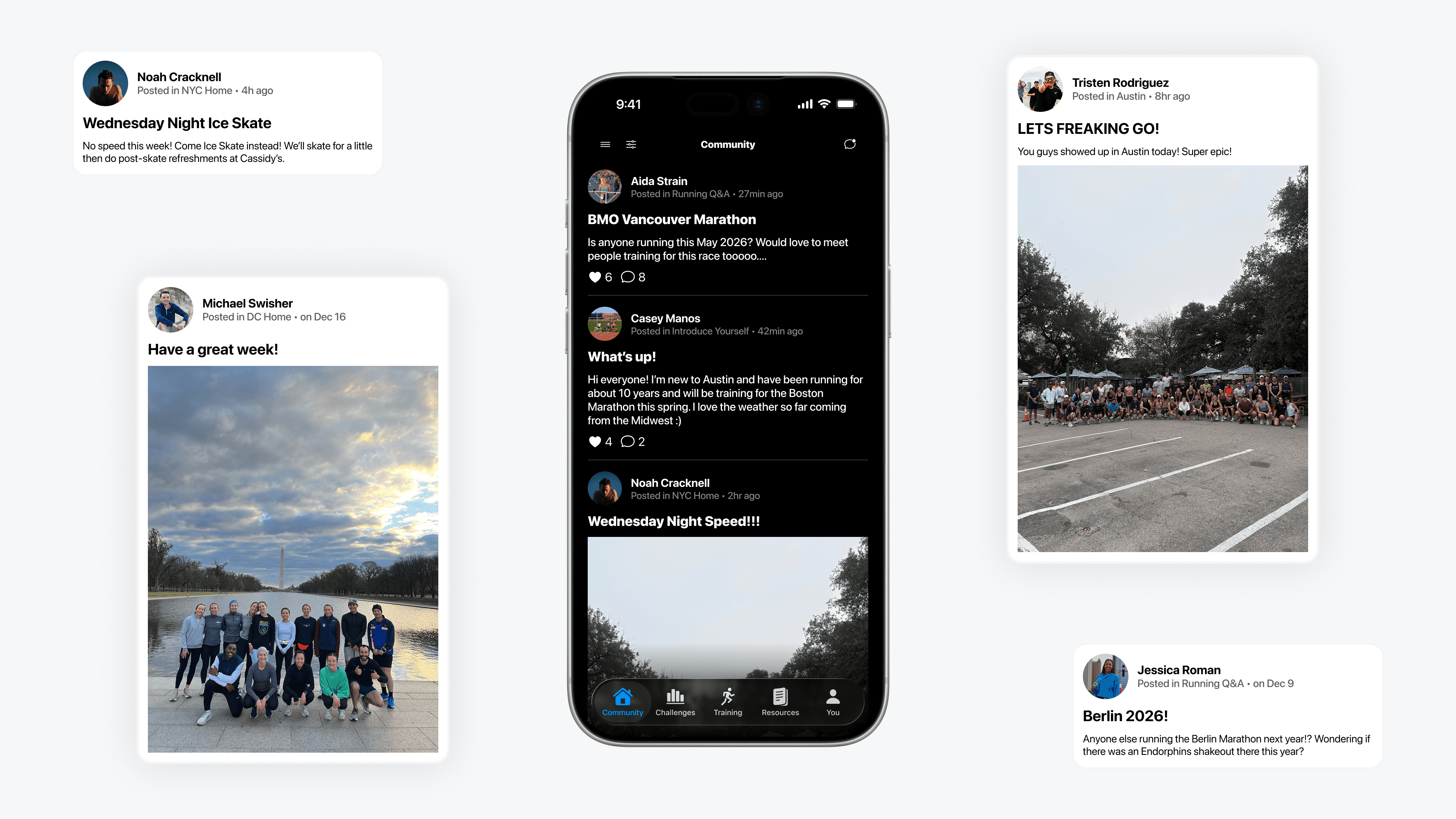 Endorphins started as weekly group runs in a handful of cities. It quickly grew into one of the largest running communities in the US. The app came later, built to extend that same energy: personalized training that adapts as you go, connected to a community that keeps you accountable.